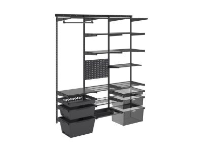 Заказчик может заказать любую комбинацию аксессуаров сетчатой гардеробной системы и убедиться в ее функциональности.