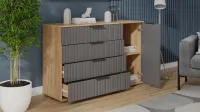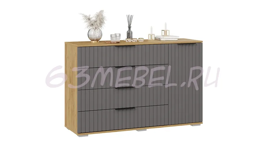 Изящный комод комбинированный «Хилтон» выполнен в лучших европейских традициях. Он подойдёт не только для спальни, а может использоваться в других комнатах – гостиной, детской, офисе или даже прихожей.