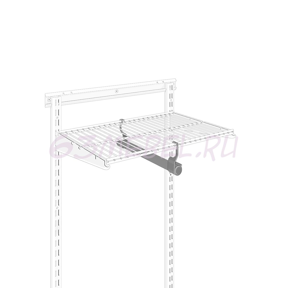 Поперечная перекладина для вешалок имеет хромированное покрытие устойчивое к истиранию. Она позволяет эффективно организовать пространство, обеспечивая удобное хранение вещей и поддерживая их аккуратный внешний вид даже в узких шкафах. Установка перекладины осуществляется путем крепления её к сетчатой полке специальными и кронштейнами. Комплект поперечной перекладины состоит из перекладины, двух кронштейнов к ней и комплекта заглушек. Поперечная перекладина устанавливается только на сетчатую полку глубиной 306 мм. Толщина металла перекладины – 0,5 мм. Сечение перекладины – 25 мм