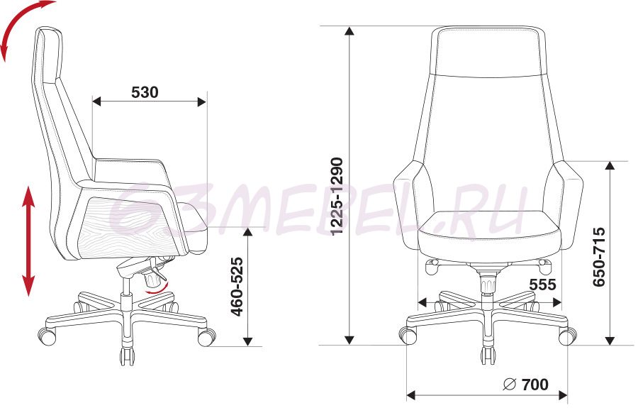 Высота кресла/стула MIN: 1225мм