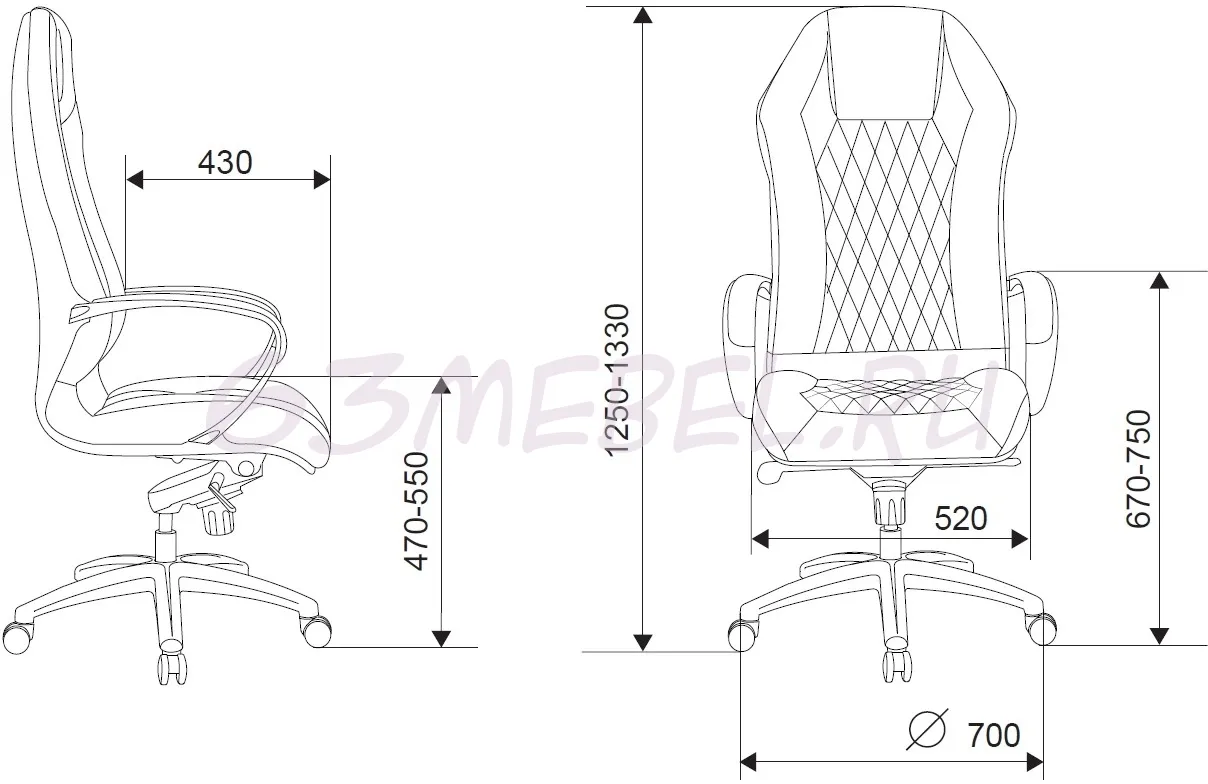 Высота кресла/стула MIN: 1250