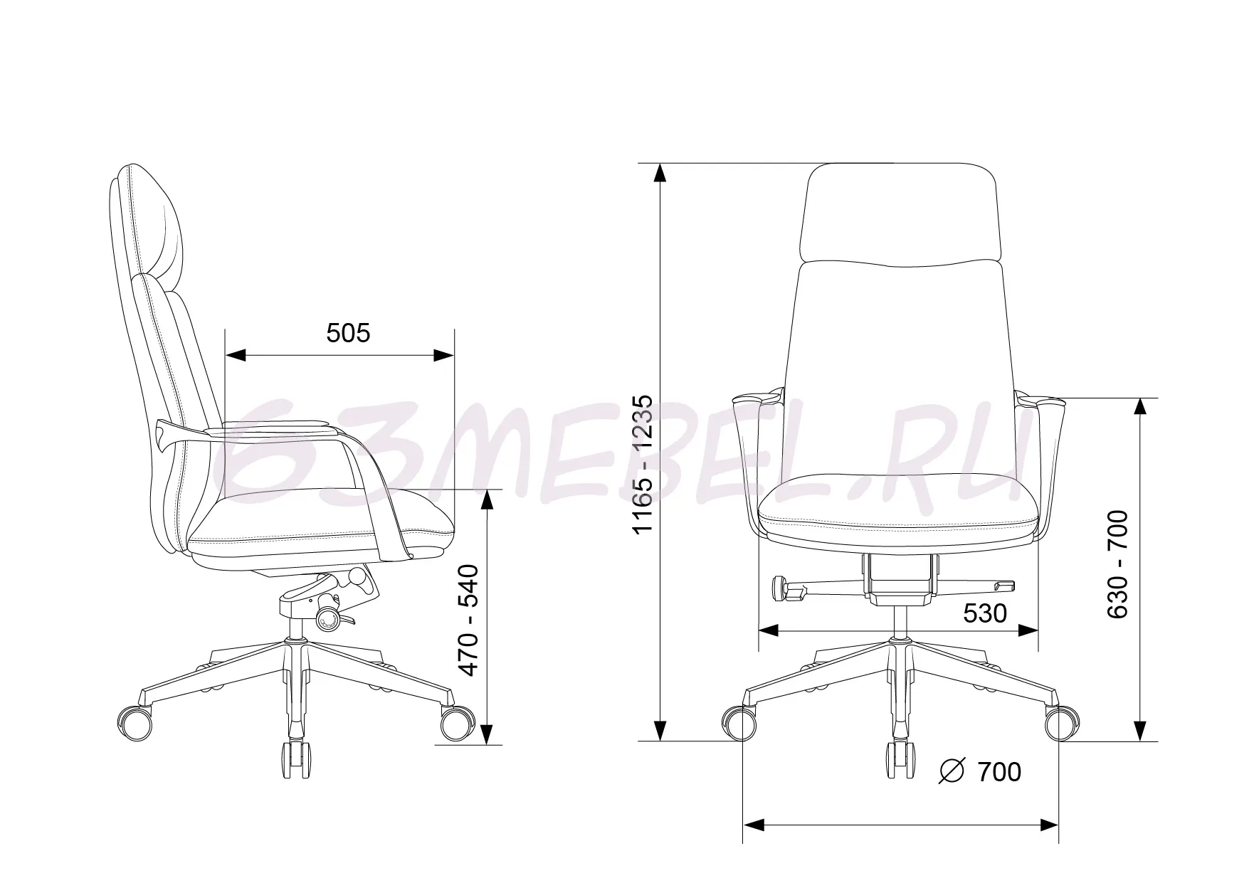 Высота кресла/стула MIN: 1165