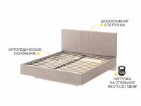 Изголовье и корпус кровати обтянуты прочной и износостойкой тканью, приятной на ощупь. Такое дизайнерское решение привлекает внимание и придает интерьеру Вашей спальни ощущение уюта. Благодаря мягкому изголовью кровать отличается повышенной степенью комфорта.