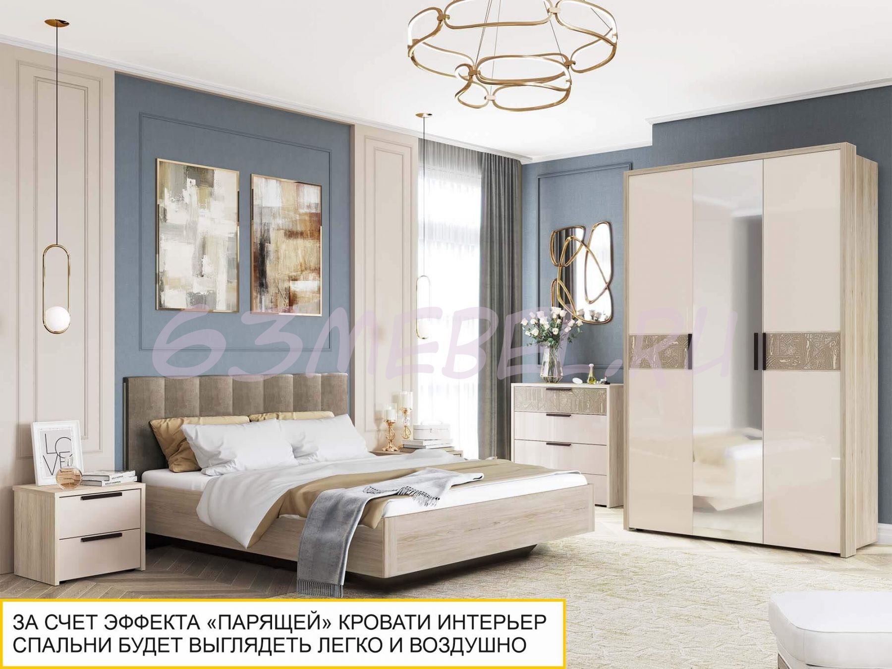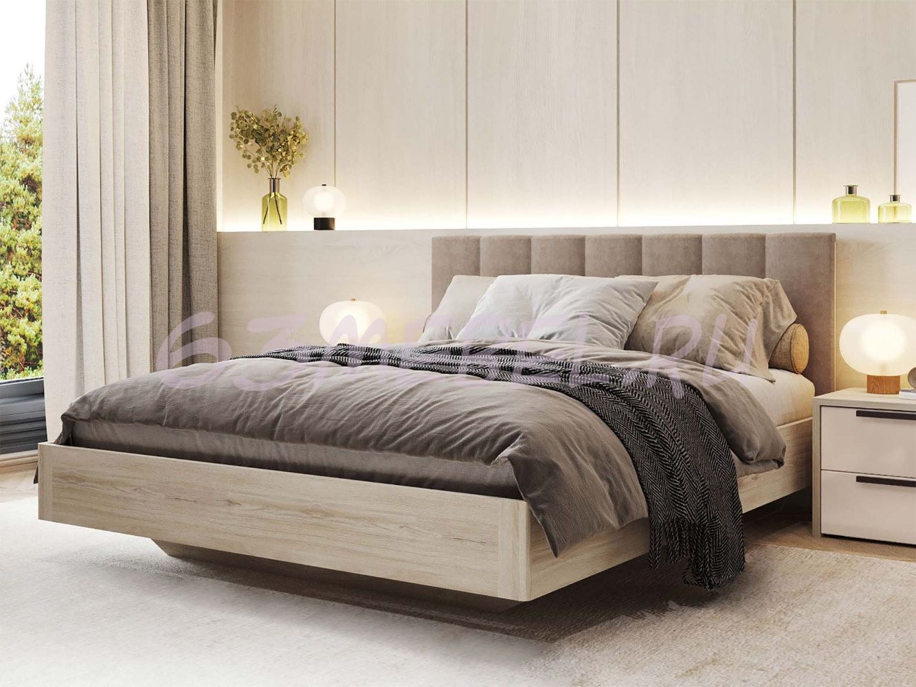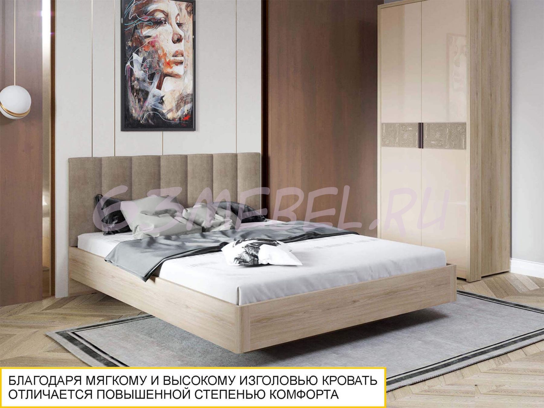 Современный стиль изделия подчеркивается модным конструктивным решением: эффектом «парящей» кровати.