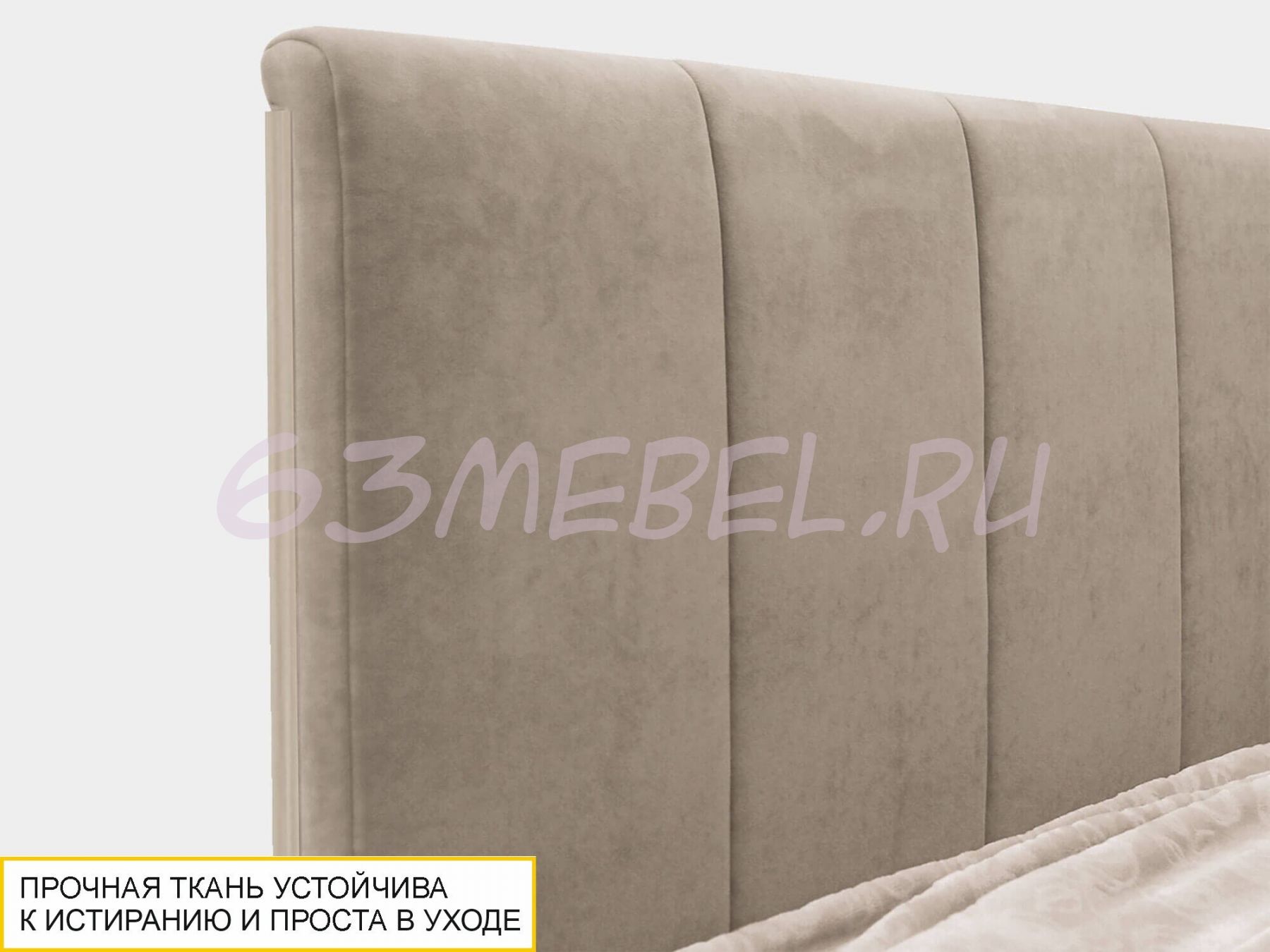 Спинка кровати выполнена из прочной и износостойкой ткани, приятной на ощупь.