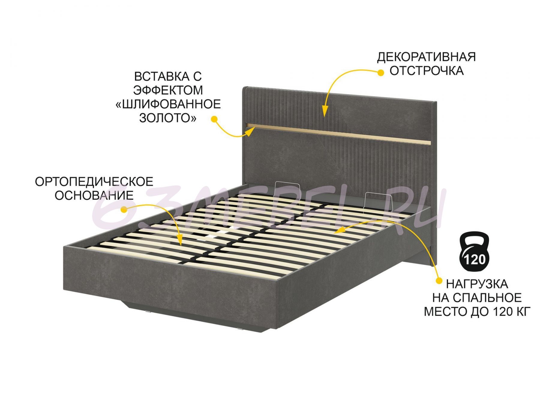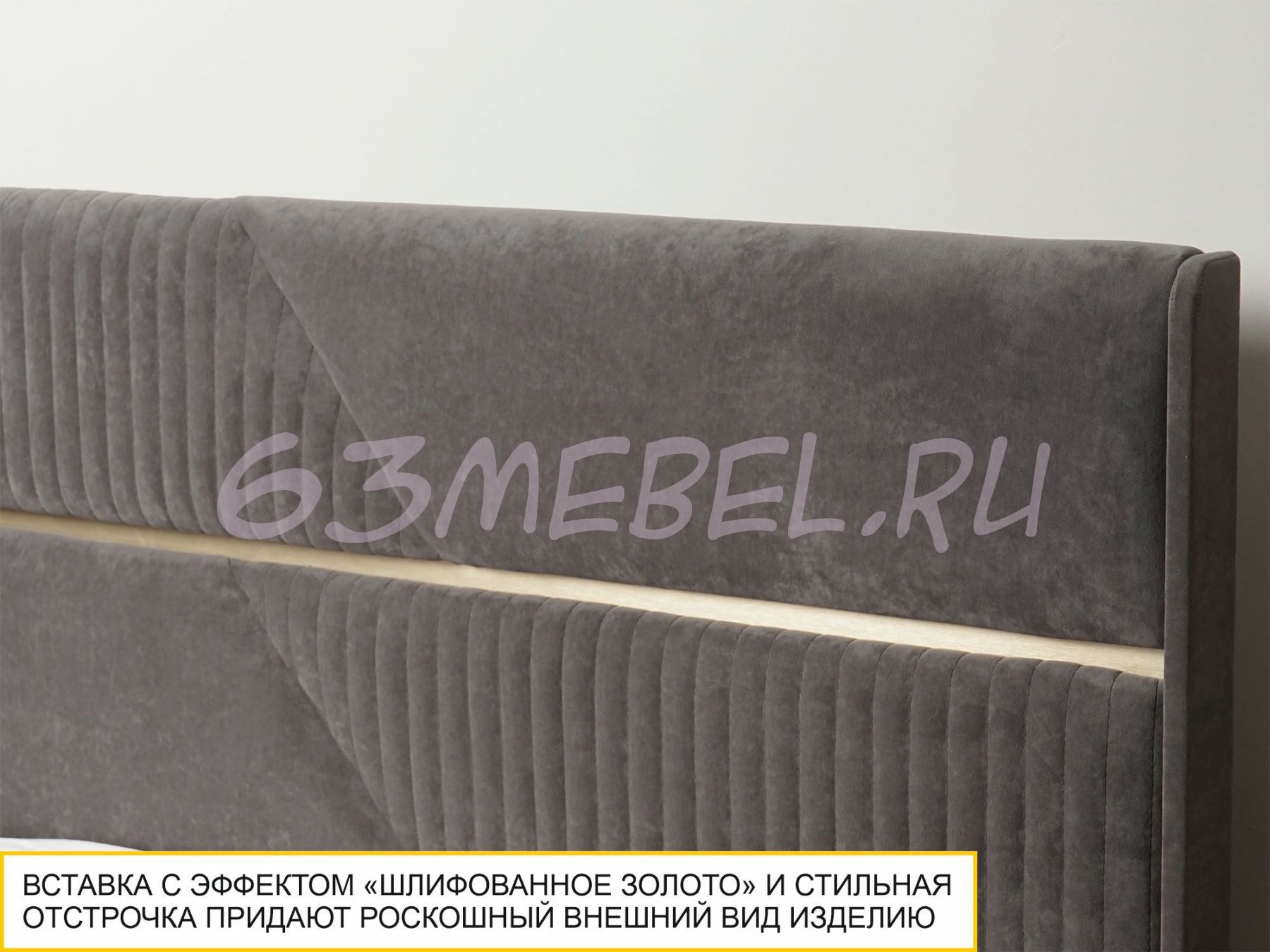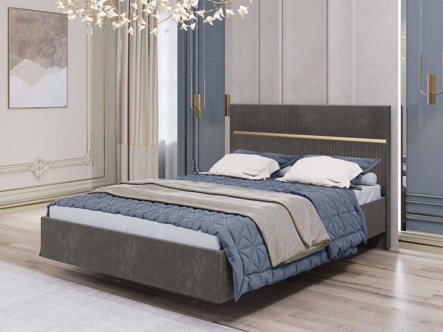 Стильная отстрочка в сочетании с металлизированной декоративной вставкой с эффектом шлифованного золота придают кровати изысканный внешний вид.