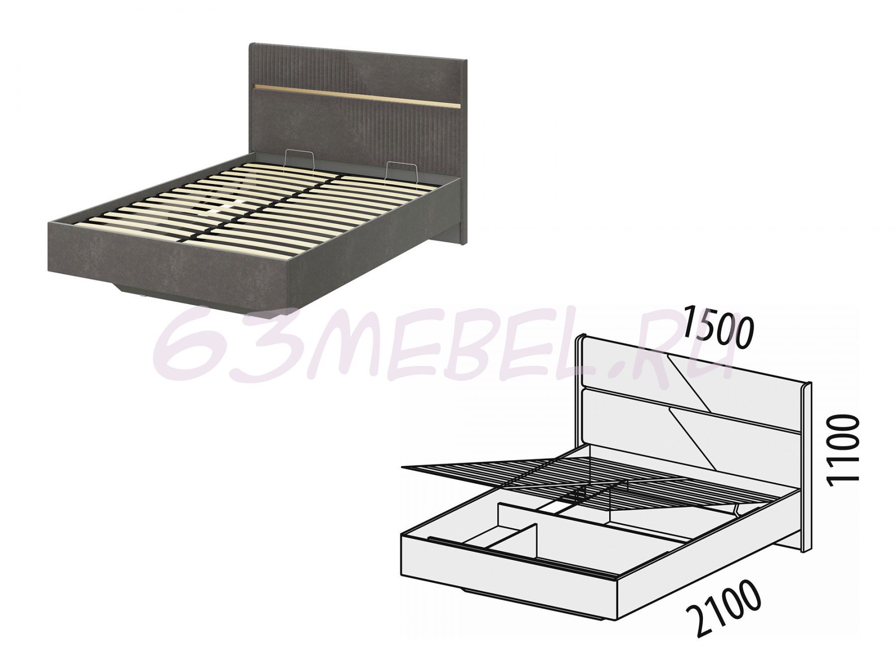 В кровати предусмотрен вместительный короб для удобного хранения одеял, подушек и других вещей.