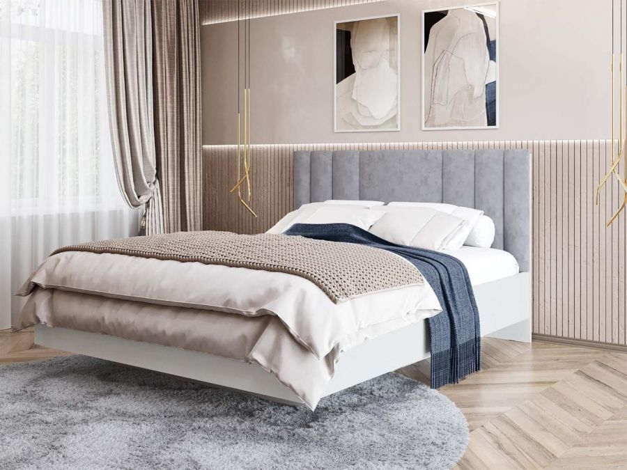 Кровать с подъемным механизмом «Николь 901.21.1» является частью модульной программы «Николь». Стильная и практичная модель, выполненная в трендовом сочетании матового белого и глубокого нежно-серого цвета, прекрасно впишется в интерьер современной спальни. Изголовье кровати выполнено из мягкого и прочного софт-велюра. Кровать можно использовать не только в сочетании с другими модулями спальни, но и как отдельный предмет мебели. Размер спального места – 1600x2000 мм.