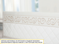 Спинка кровати декорирована вставкой из экокожи и украшена оригинальной фрезеровкой, глиттерным рисунком и кристаллами премиум-класса.