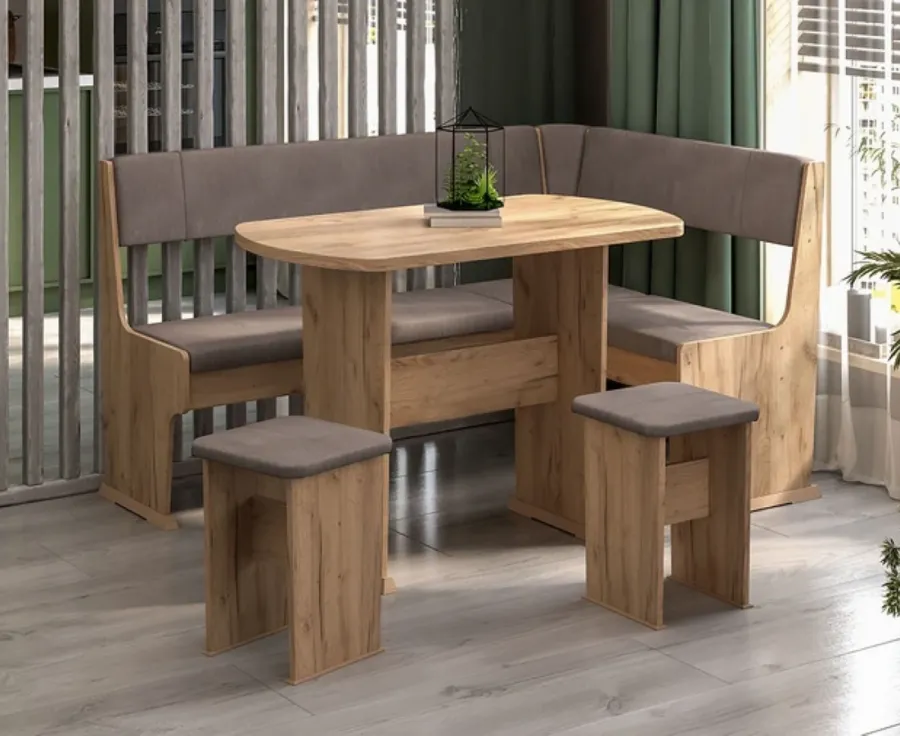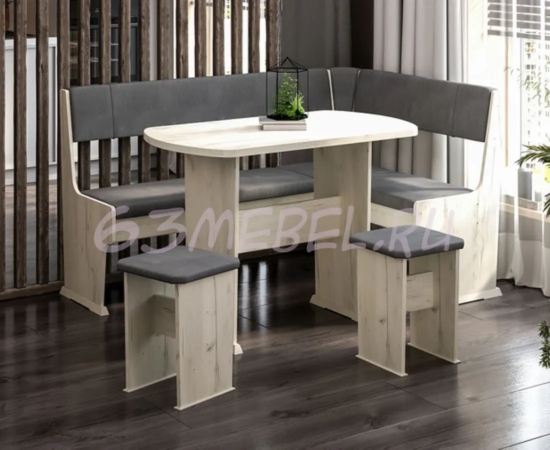 Кухонный уголок «Рио» - выгодное решение для домашнего интерьера, которое помогает расположить большое число посадочных мест на ограниченном пространстве. Это компактный набор мебели, разработанный с учетом современных тенденций. За счет удобства и уюта он станет главной частью кухни, где захочется проводить больше времени.