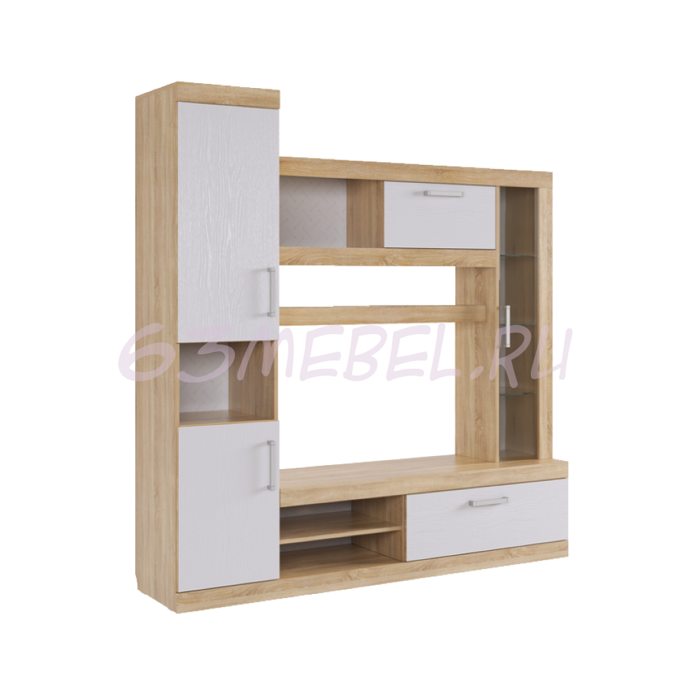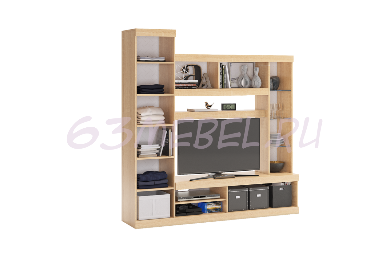 Гостиная Макси предлагает вам идеальное решение для организации пространства. С этим функциональным набором мебели вы сможете создать систему хранения, которая будет не только практичной, но и стильной. Вам больше не придется думать о том, где хранить технику, белье, аксессуары или любимые сувениры — все это будет под рукой.