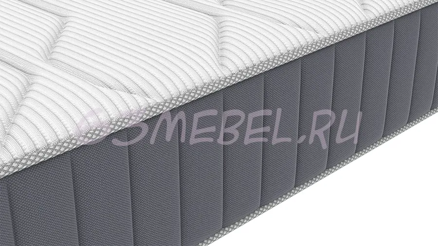 Материал на пласти матраса - трикотаж, стеганый на полиэфирном волокне. Преимущества: мягкий, приятный на ощупь и уютный, улучшает воздухообмен, клиенту комфортно спать в течение всей ночи и независимо от времени года. Материал бурлета: Велюр Maxx 965 благородного серого цвета.