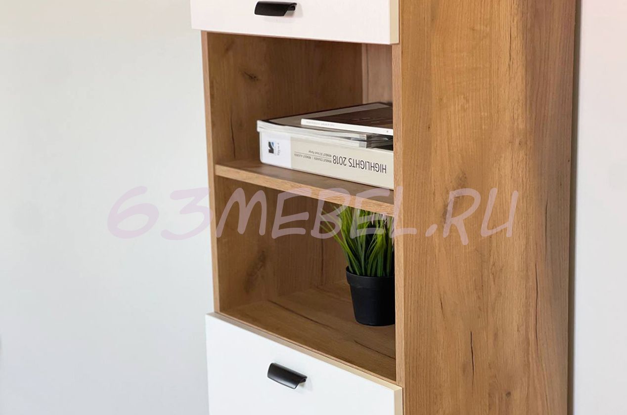 Данный шкаф многофункциональный, прекрасно подойдет в гостиную в качестве дополнения к тумбе под ТВ "Моди", а так же, как стеллаж к столу.