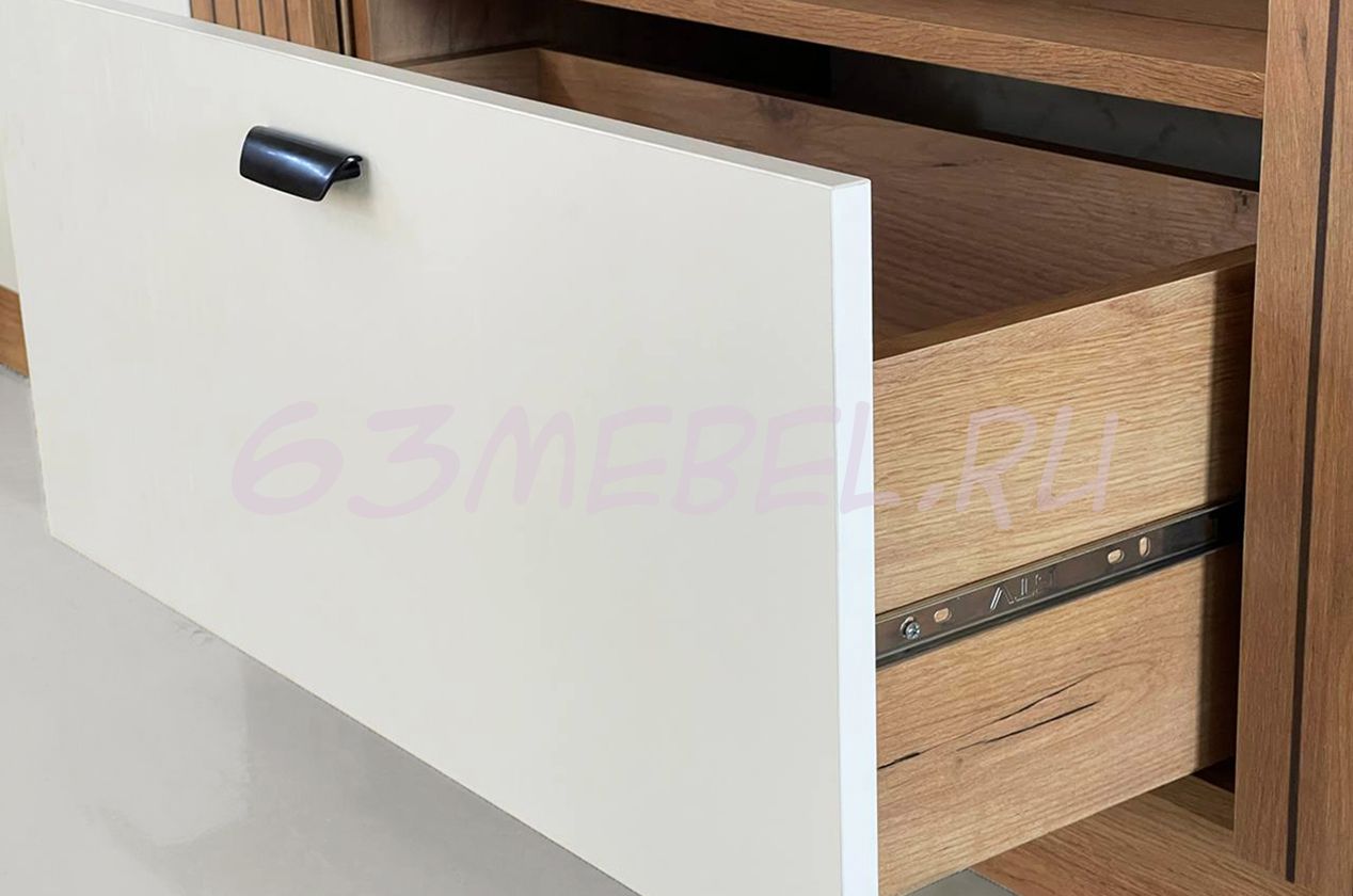 Тумба "Моди"- это вместительный выдвижной ящик, большой отсек с полкой и открытая ниша для мелочей, лучшее решение для гостиной и других комнат.