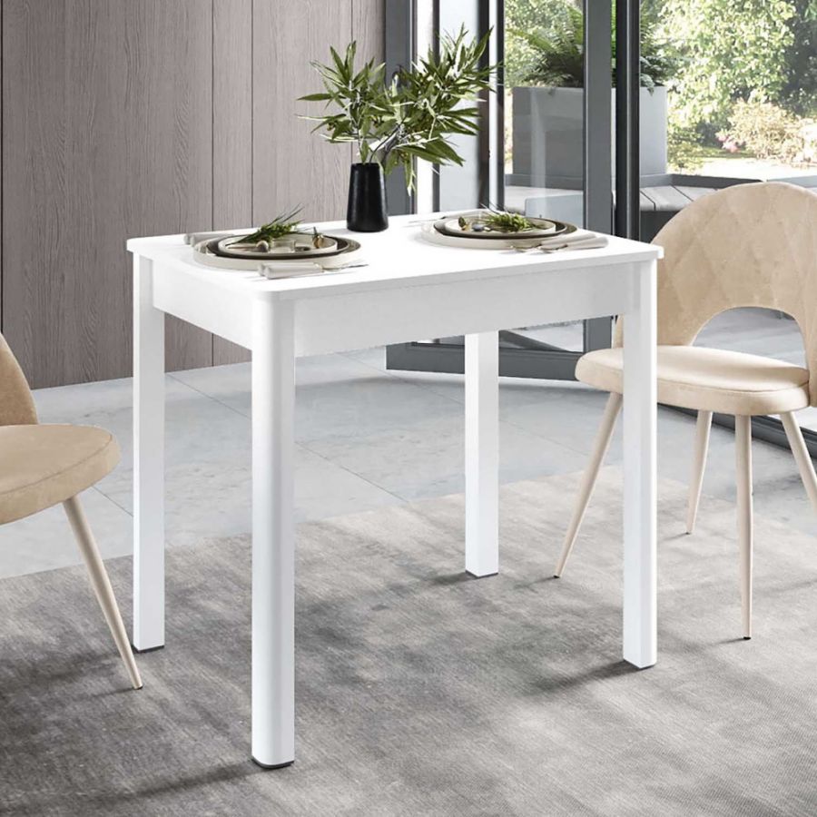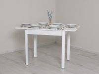 Белый цвет добавляет интерьеру свежести и визуально расширяет пространство, а имитация текстуры дерева придает ему модную нотку экостиля. В сложенном виде размер стола – 82х60 см, в разложенном – 122х60 см; высота стола 75 см.