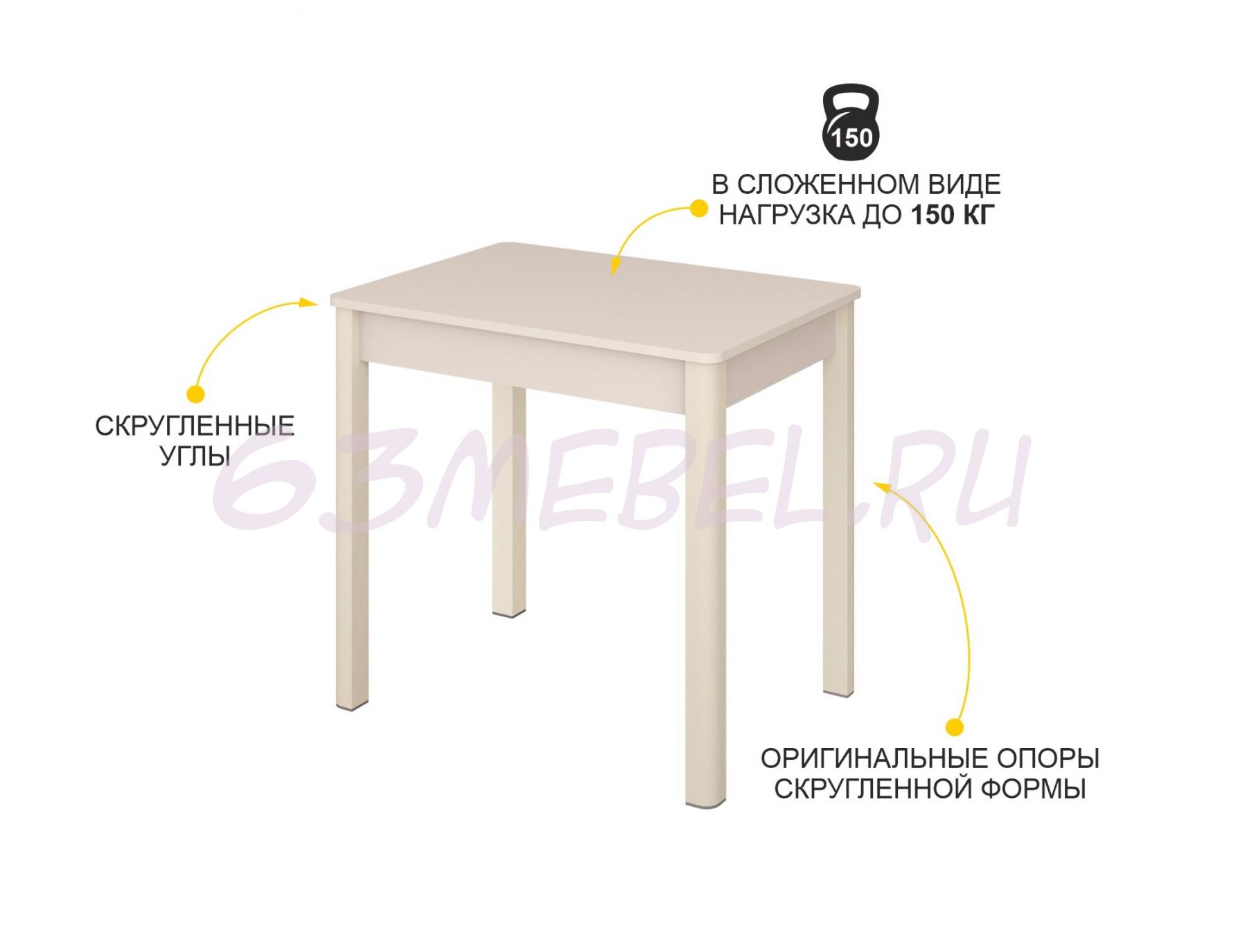 Мягкие бежевые оттенки наполняют пространство теплом и гармонией. В сложенном виде размер стола – 82х60 см, в разложенном – 122х60 см; высота стола 75 см.