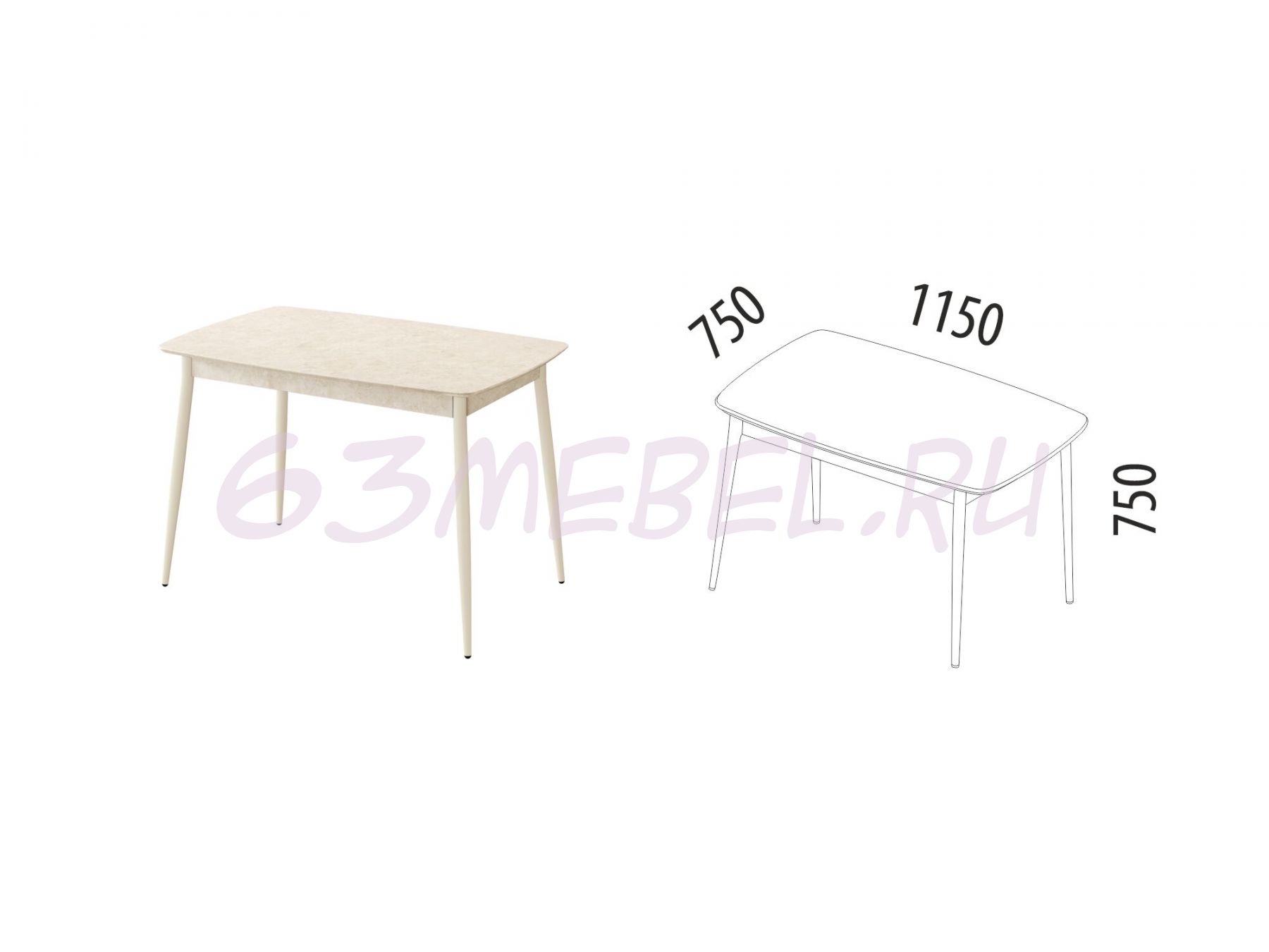 Обеденный стол «Орфей» 55 (01) Стоун Крем-Бежевый