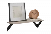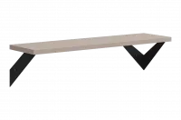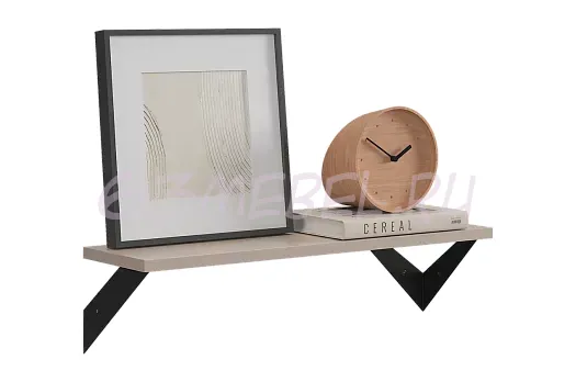 Полка крепится к стене с помощью чёрных треугольных держателей, которые обеспечивают устойчивость и долговечность. Особенность модели в том, что держатели можно расположить сверху, снизу или один сверху, другой снизу, что позволяет адаптировать полку под любые интерьерные решения и потребности.