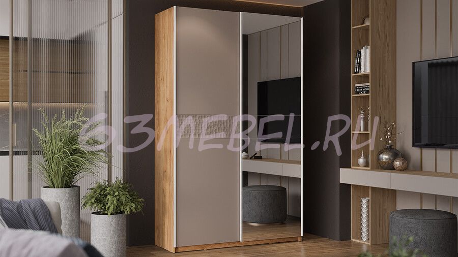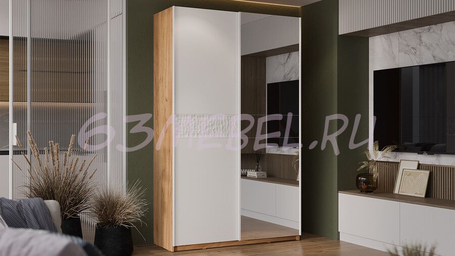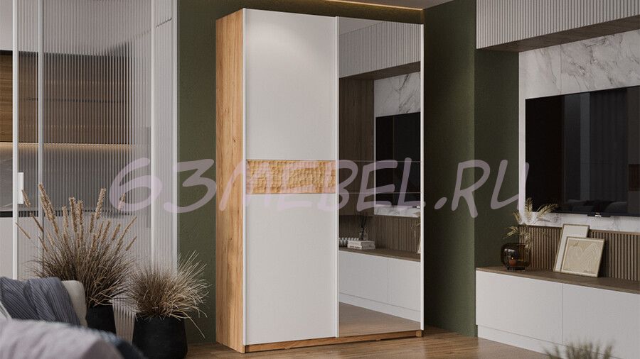 Шкаф-купе с 1 глухой и 1 зеркальной дверями «Оскар Скания» Ручка белая 1400