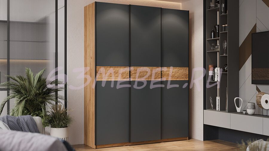 Шкаф-купе с 3 глухими дверями «Оскар Скания» Ручка черная 1800