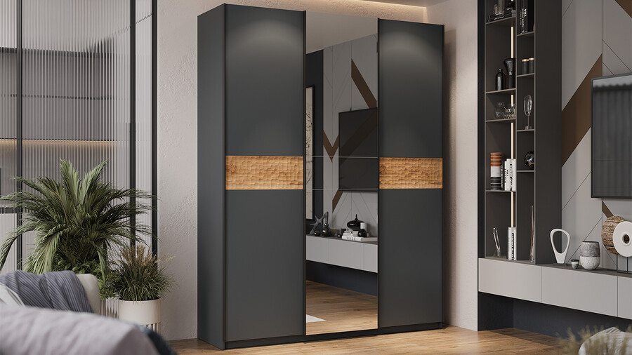 Шкаф-купе с 2 глухими дверями и 1 зеркальной дверью «Оскар Скания» Ручка черная 1800