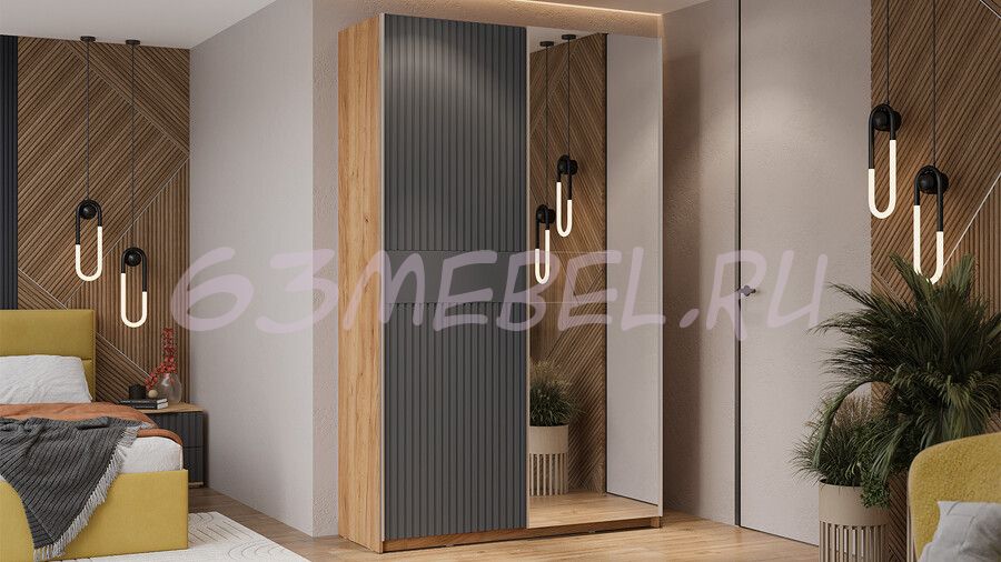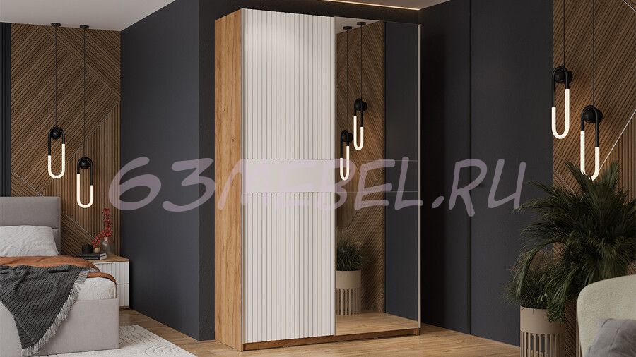 Шкаф-купе с 1 глухой и 1 зеркальной дверями «Оскар Хилтон» Ручка серебро 1400
