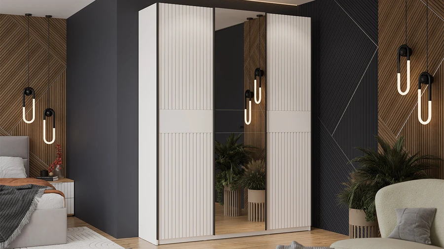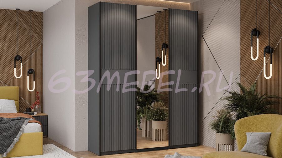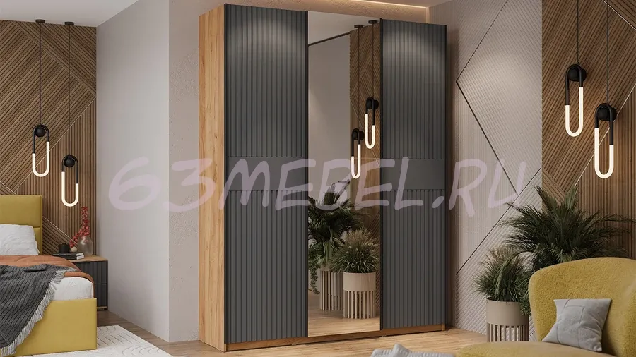 Шкаф-купе с 2 глухими и 1 зеркальной дверью «Оскар Хилтон» Ручка черная 1800