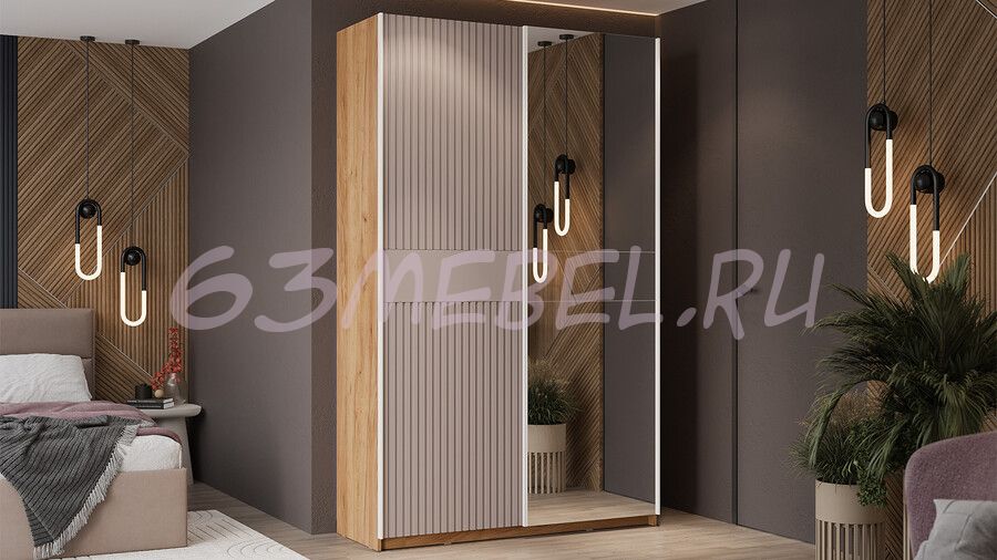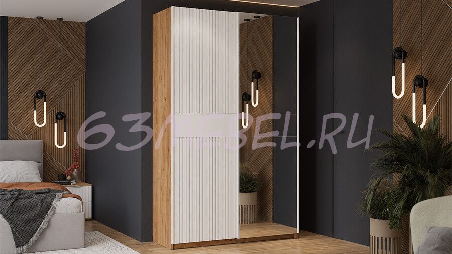 Шкаф-купе с 1 глухой и 1 зеркальной дверями «Оскар Хилтон» Ручка белая 1400