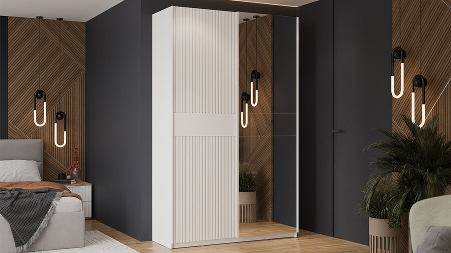 Шкаф-купе с 1 глухой и 1 зеркальной дверями «Оскар Хилтон» Ручка белая 1400