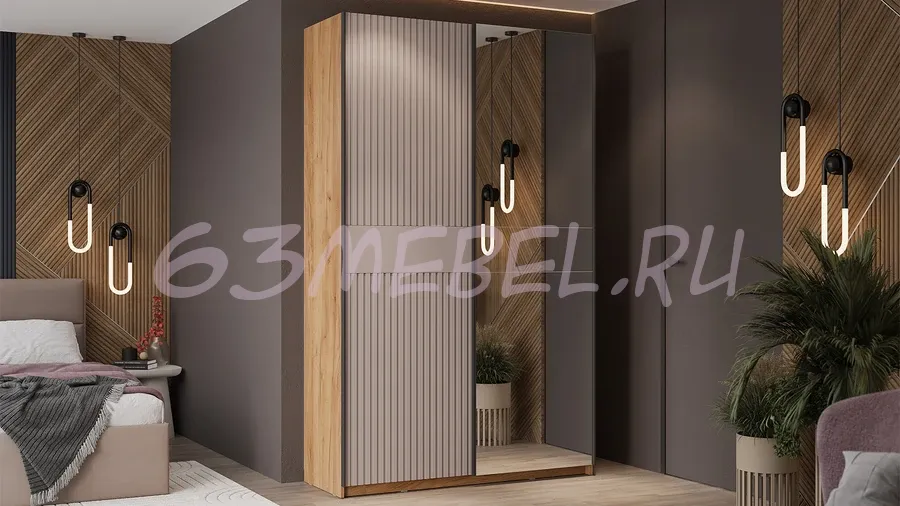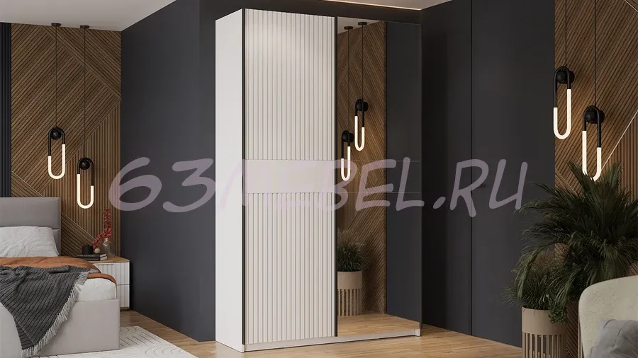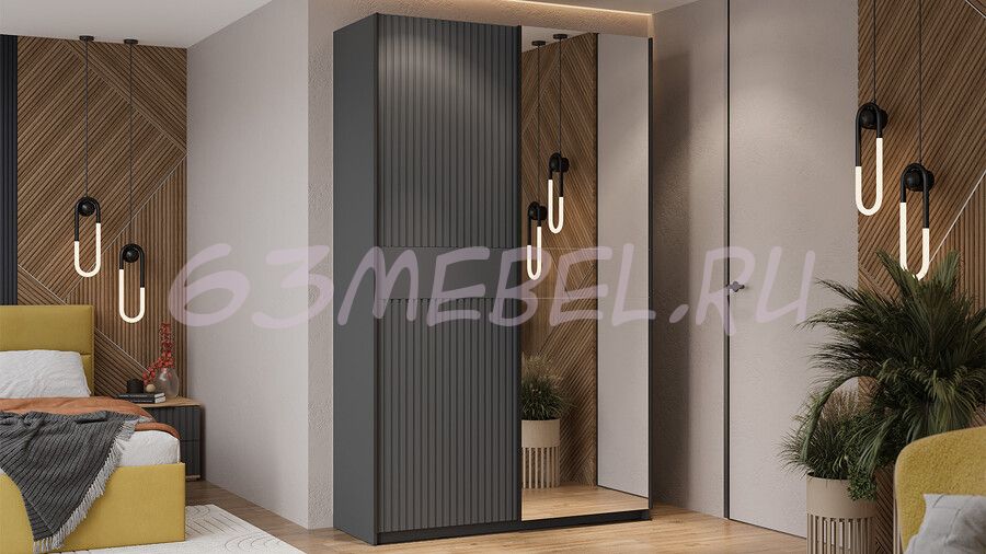 Шкаф-купе с 1 глухой и 1 зеркальной дверями «Оскар Хилтон» Ручка черная 1400