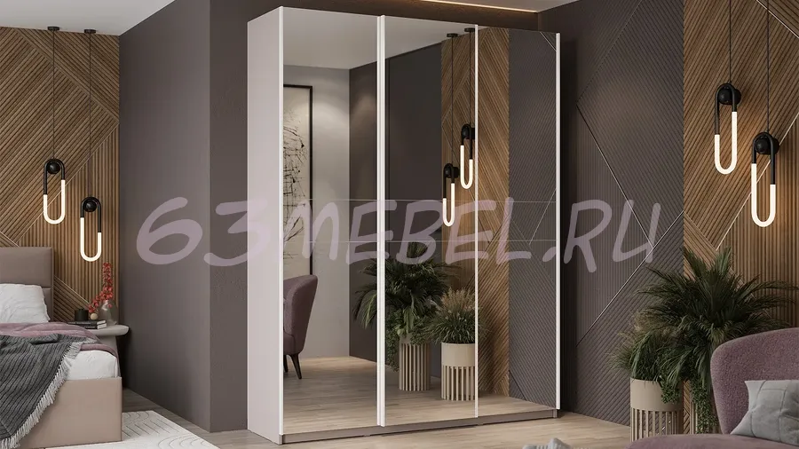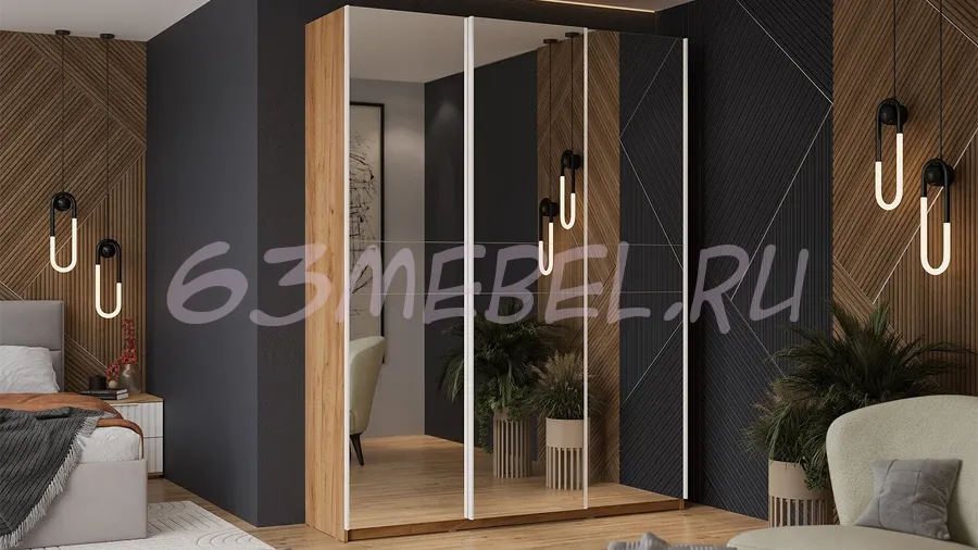 Шкаф-купе с 3 зеркальными дверями «Оскар» Ручка белая 1800