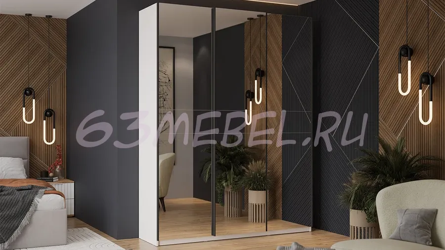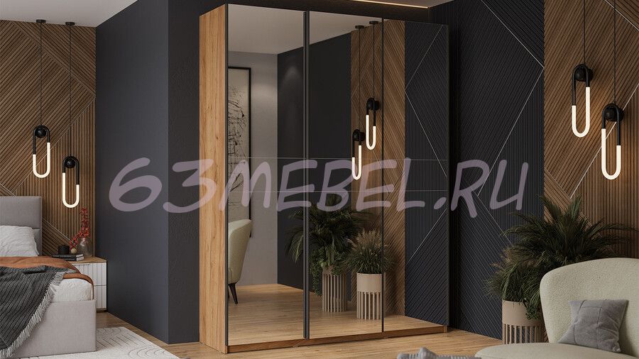 Шкаф-купе с 3 зеркальными дверями «Оскар» Ручка черная 1800