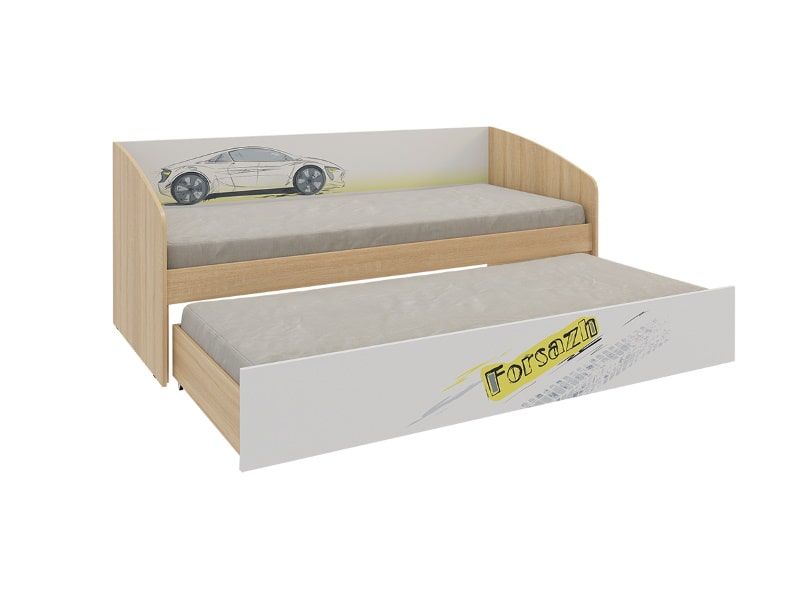 Дополнительное удобное спальное место или большой выдвижной ящик для хранения постельного белья и игрушек, на выбор, решать вам. Стильный принтерный рисунок на фасаде. Детская «Форсаж» - это стильная, современная детская, которая понравится каждому ребенку. Рисунок устойчив к истиранию и ультрафиолету.