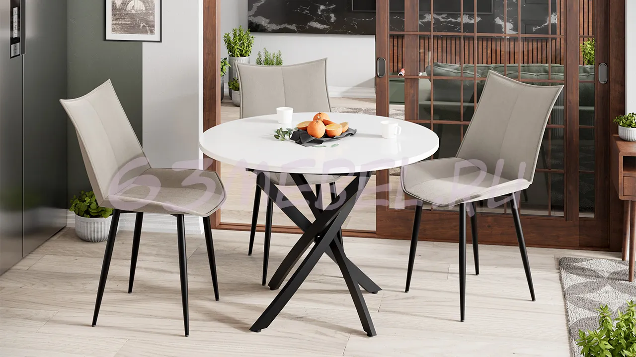 Стол обеденный «Дуглас» Тип 1 привлекает свое внимание элегантной, круглой формой столешницы в сочетании с запоминающимся дизайном металлических опор. В новинке соединены модные тенденции, минимализм и лаконичность - с одной стороны, и практичность вместе с удобством и комфортом – с другой.