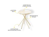 Столик выполнен в современном стиле, который удачно сочетает в себе элегантность и практичность. Круглая форма столешницы делает мебель удобной и комфортной в использовании. Комбинация «белого мрамора» и «глянцевого золота» выглядит стильно и эффектно. Идеальное решение для тех, кто хочет добавить в интерьер элегантности.