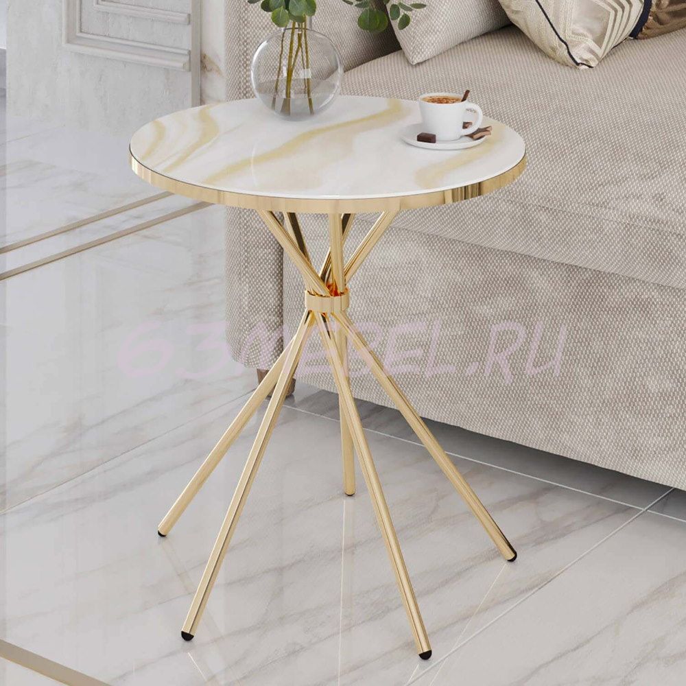 Стол журнальный «Агат» 41 (01) Белый мрамор-Золото